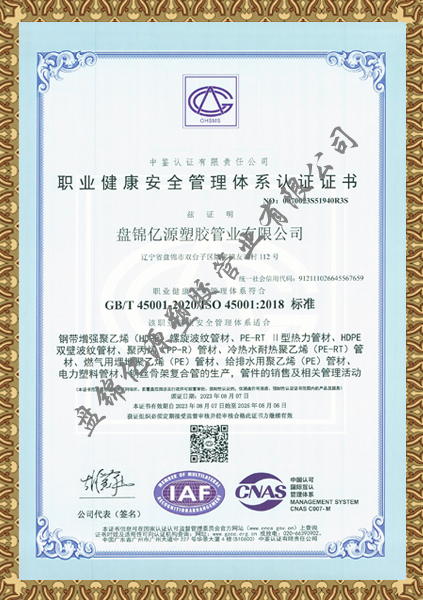 職業健康安(ān)全(quán)管(guǎn)理體係認證證書