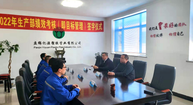 2022年2月19日上午11點(diǎn),公司領導及生(shēng)產部領(lǐng)導召開了《2022年生產部績效考(kǎo)核(即目標(biāo)管理)》簽字儀式,本次儀式主要目的(de)是為了落實公司推行目標化(huà)管理(lǐ)的(de)政(zhèng)策(cè)方針,確定好成果評定方(fāng)案; 按照公司目標化管理政策方針,目標管理的(de)實施(shī)分為3步,分別是確定(dìng)目標,實施目標以及成果評定(dìng),生產部在生產運行部長程(chéng)曉凱的帶領下率先於其他部門(mén),明確了2022年度管理目標,並製訂了初步實施方案,標誌(zhì)著(zhe)公司推(tuī)行目標(biāo)化管理政策方案的(de)實施,同時公司領導也已確定了(le)生產部的成果評定方案(àn),該方(fāng)案的正式簽字代表著生(shēng)產部(bù)2022年(nián)目標管理的完善(shàn); 簽字儀式完(wán)成後,公司領導與生產部領導就(jiù)公司2022年如何更好的(de)通過成果(guǒ)評(píng)定進行了(le)深入的探討,為公司(sī)今年安全穩步、保(bǎo)質保量的生產奠定了堅實基礎; 簽字儀式流程及圖片: