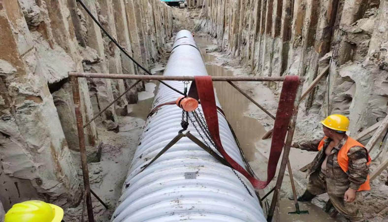 該工程中標後我公司也做到了多個首創,首(shǒu)先該工程選用鋼帶增強聚乙烯螺旋波紋管材為無色管(guǎn)材(即原料本色),該顏色管材為國內第一次生產並投入使用,是對我(wǒ)公司技術力量的一(yī)種考驗,最(zuì)終在公司領導的帶(dài)領下,對生產(chǎn)工藝進行優化改進,成(chéng)功生產出符合該項目要求並達到行業標準的(de)管材;