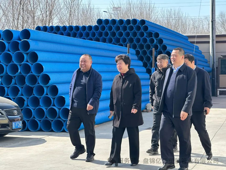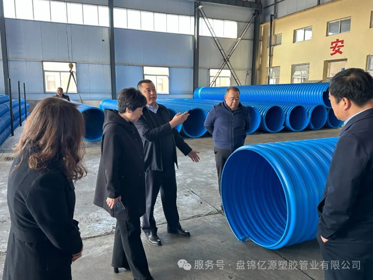 王茜(qiàn)主任一行參觀了企業生產車(chē)間,詳細了(le)解了市政管道生產流程、技術研發及市場銷售(shòu)情況。對企業在技(jì)術創新、市(shì)場開拓、產品質量等方麵的成就給(gěi)予高度肯定。
